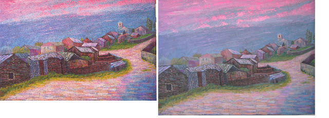| Pequeas diferencias entre grabado digital y óleo; temática MAJAELRAYO del blog obra variada comentaeda por el autor (i) Ref. 470 "Majaelrayo" o "De los Pueblos Negros", pueblo castellano diferente al andaluz Ref. 469 |
